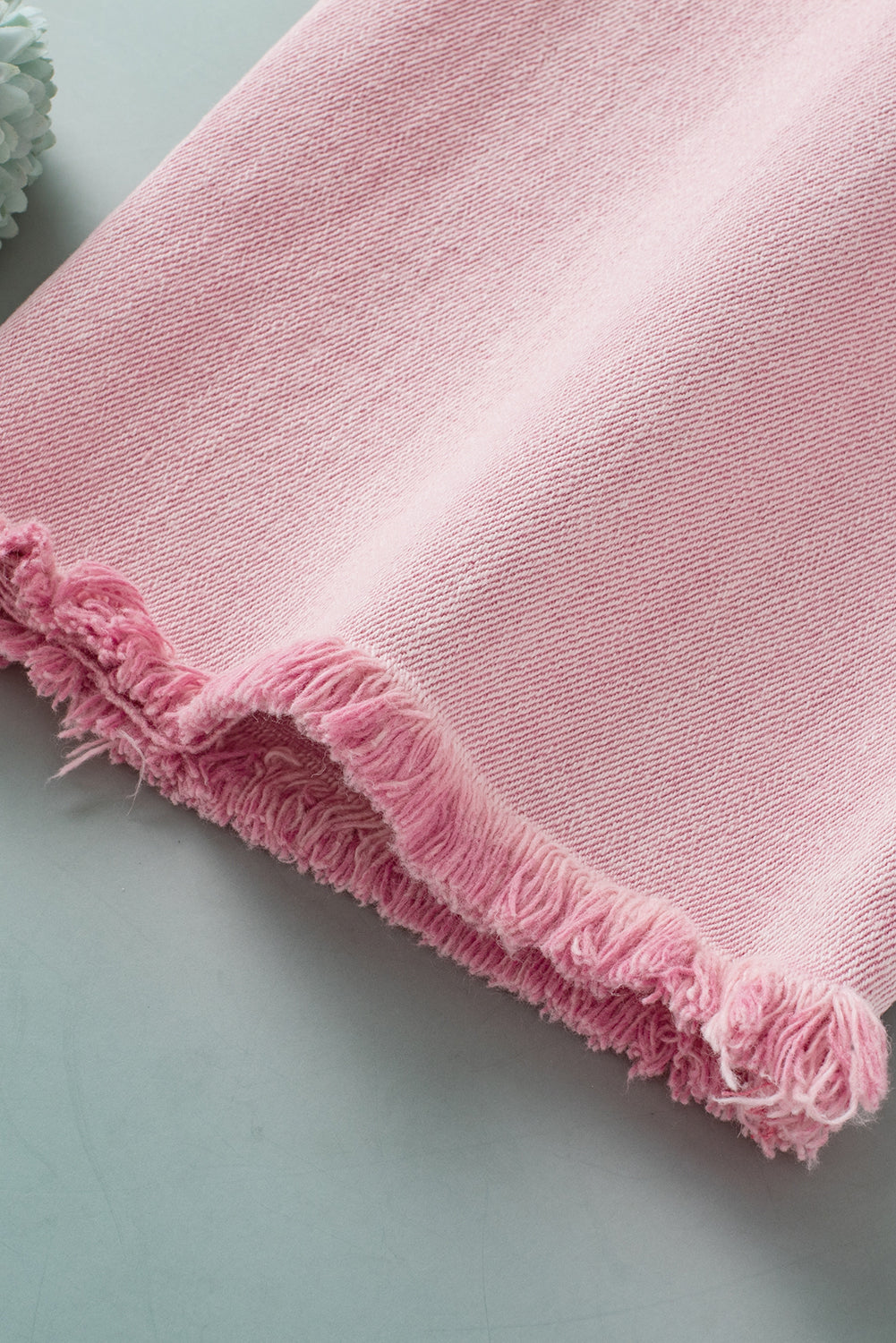 Apricot Pink Multi Buttons Raw Edge Crop Jeans