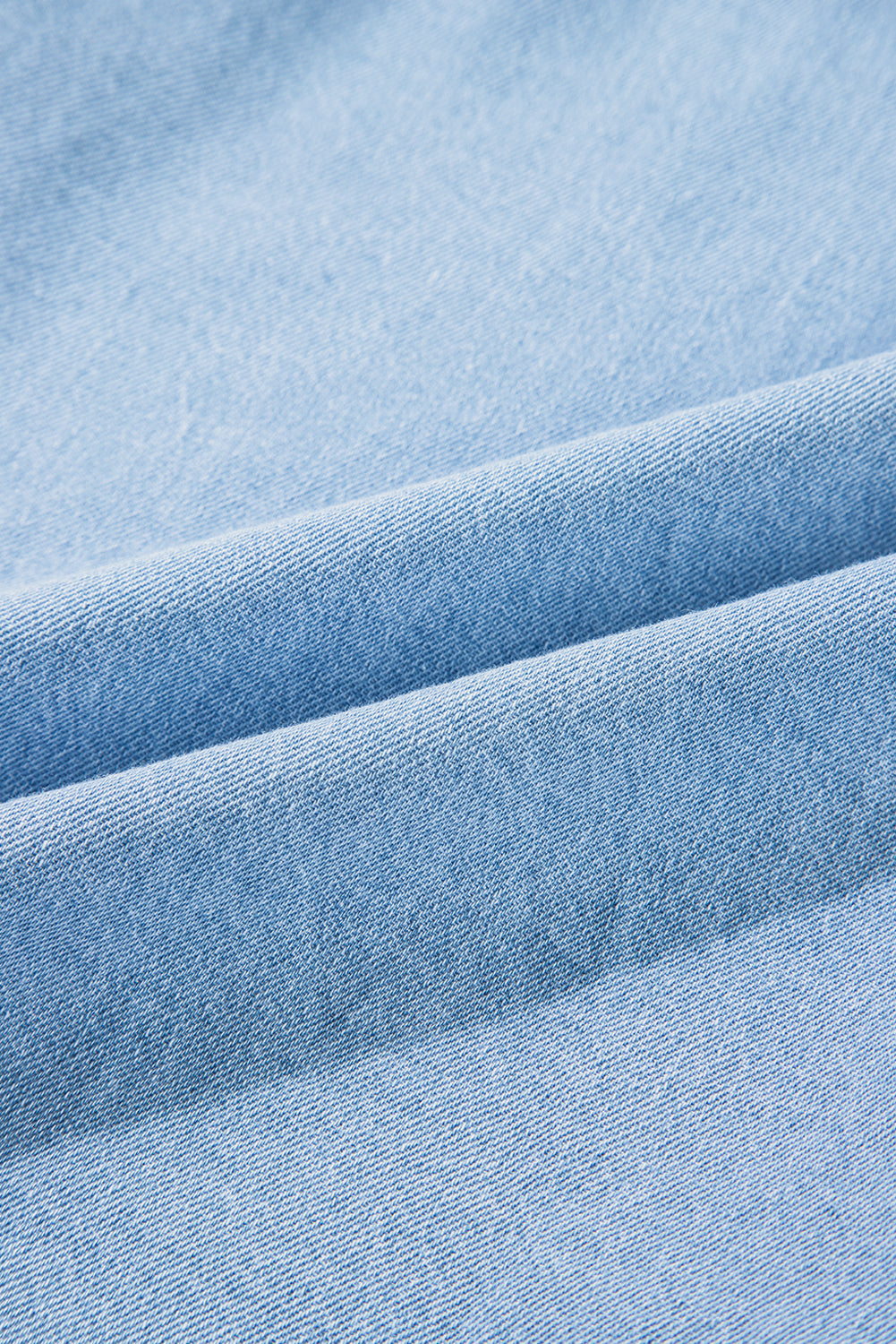 Beau Blue Button Front Ruffled Flutter Frayed Denim Top