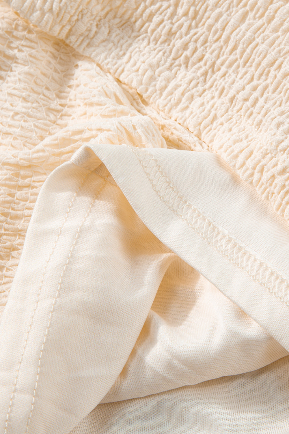 Beige Textured Deep V Neck Cutout Back Mini Dress