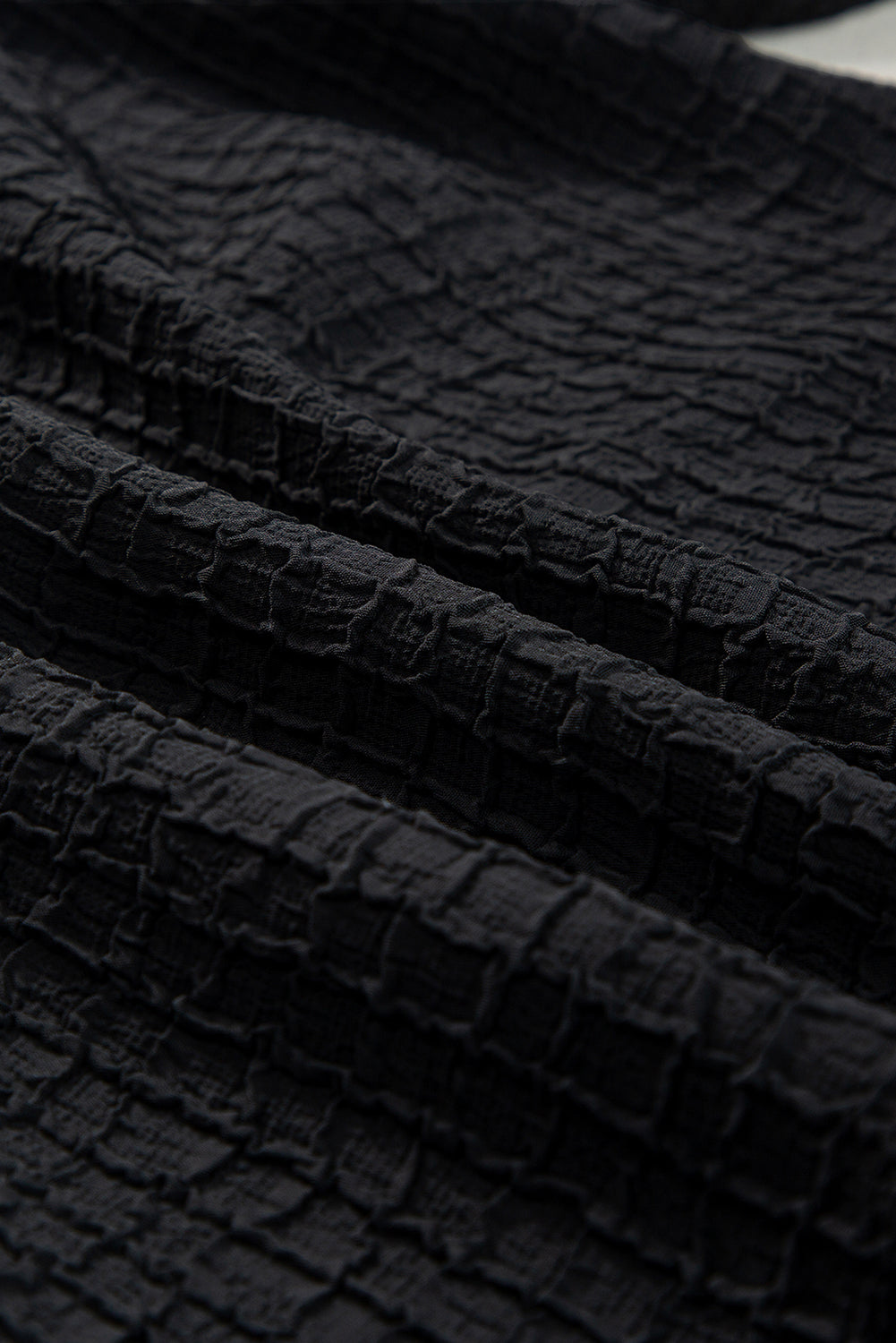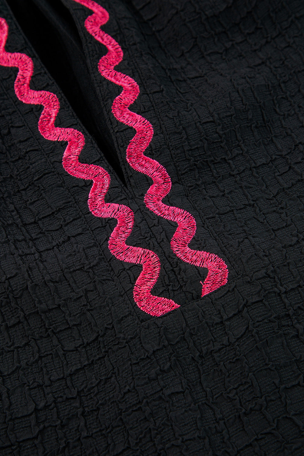 Black Floral Embroidered Ricrac Puff Sleeve Textured Blouse
