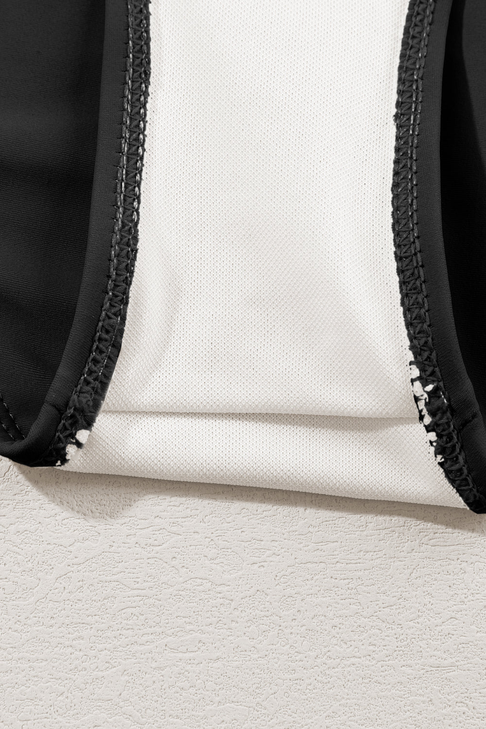 Black Striped Patchwork Spaghetti Strap High Waist Bikini Swimsuit