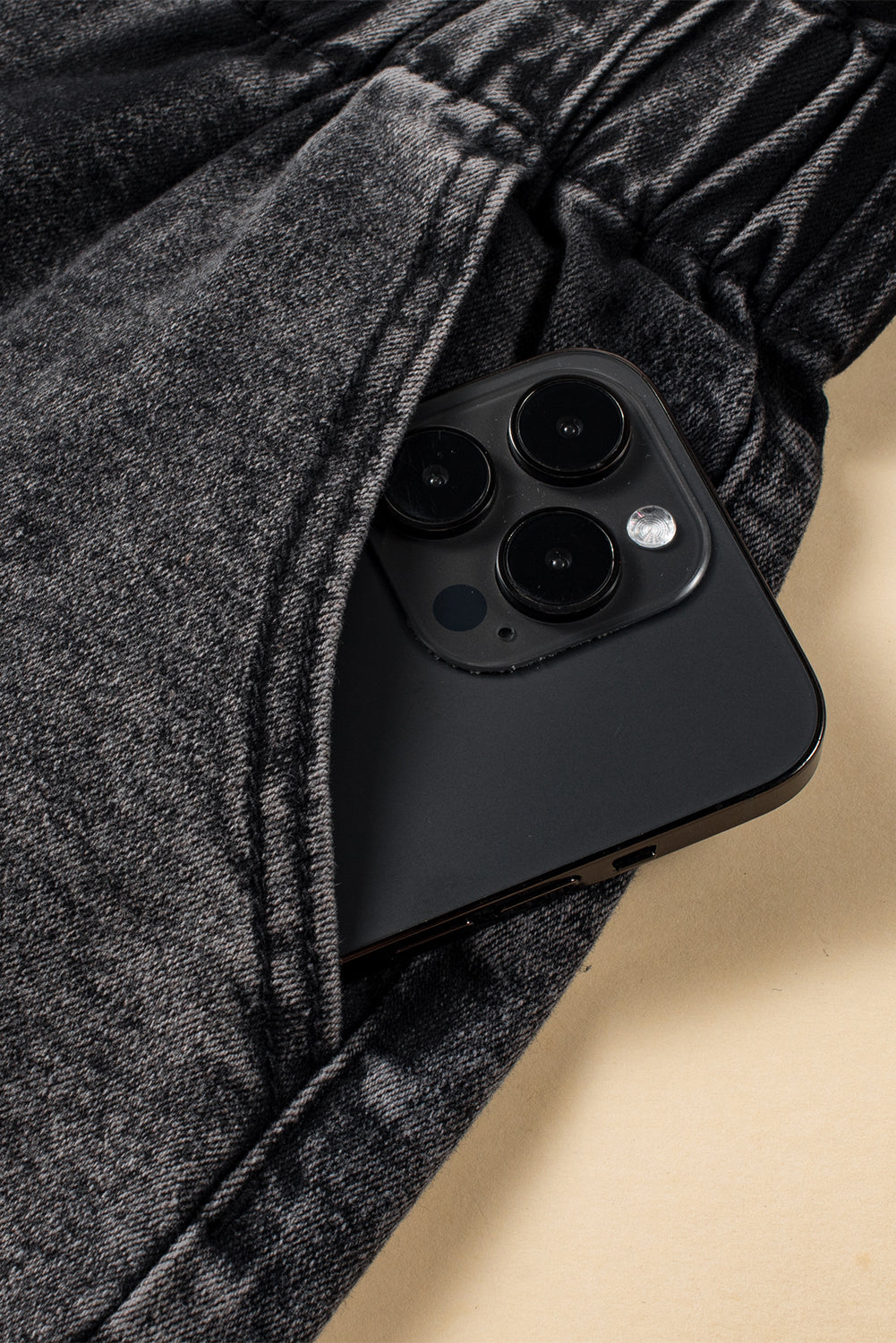 Black Vintage Washed Frilled High Waist Denim Shorts