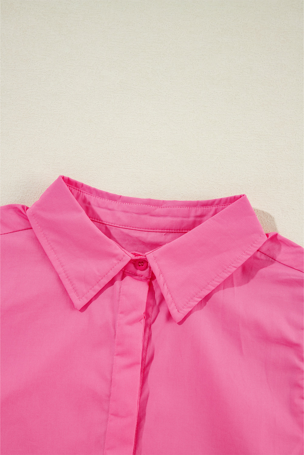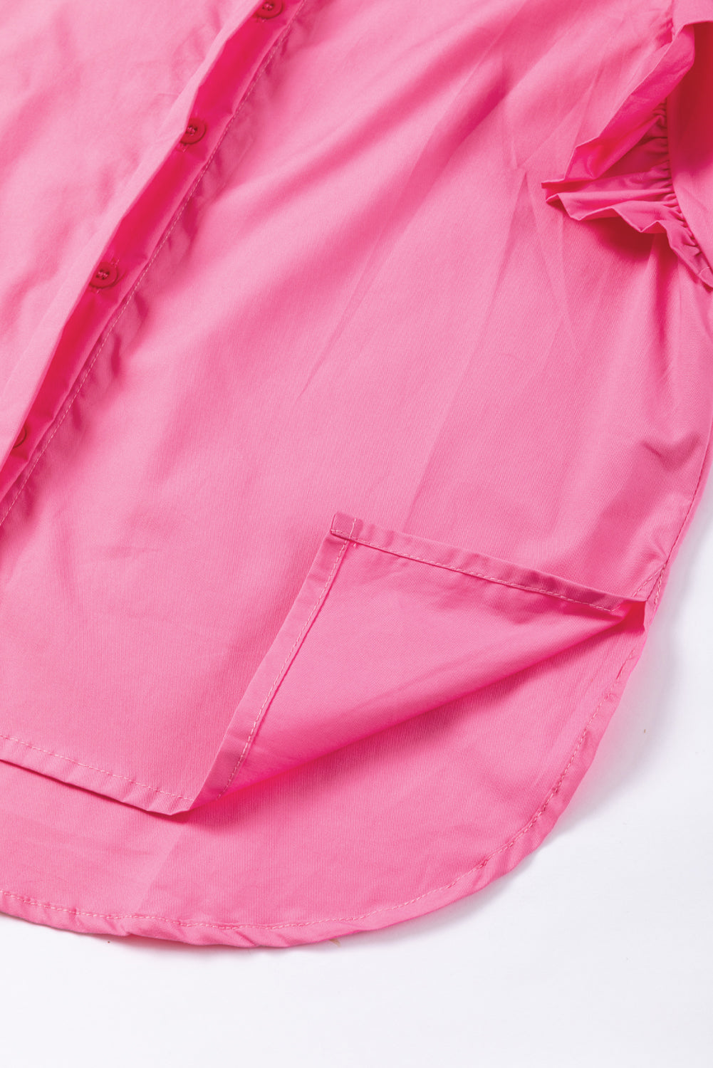 Bonbon Poplin Ruffle Trim Collared Shirt