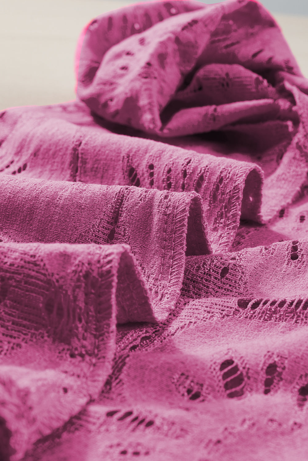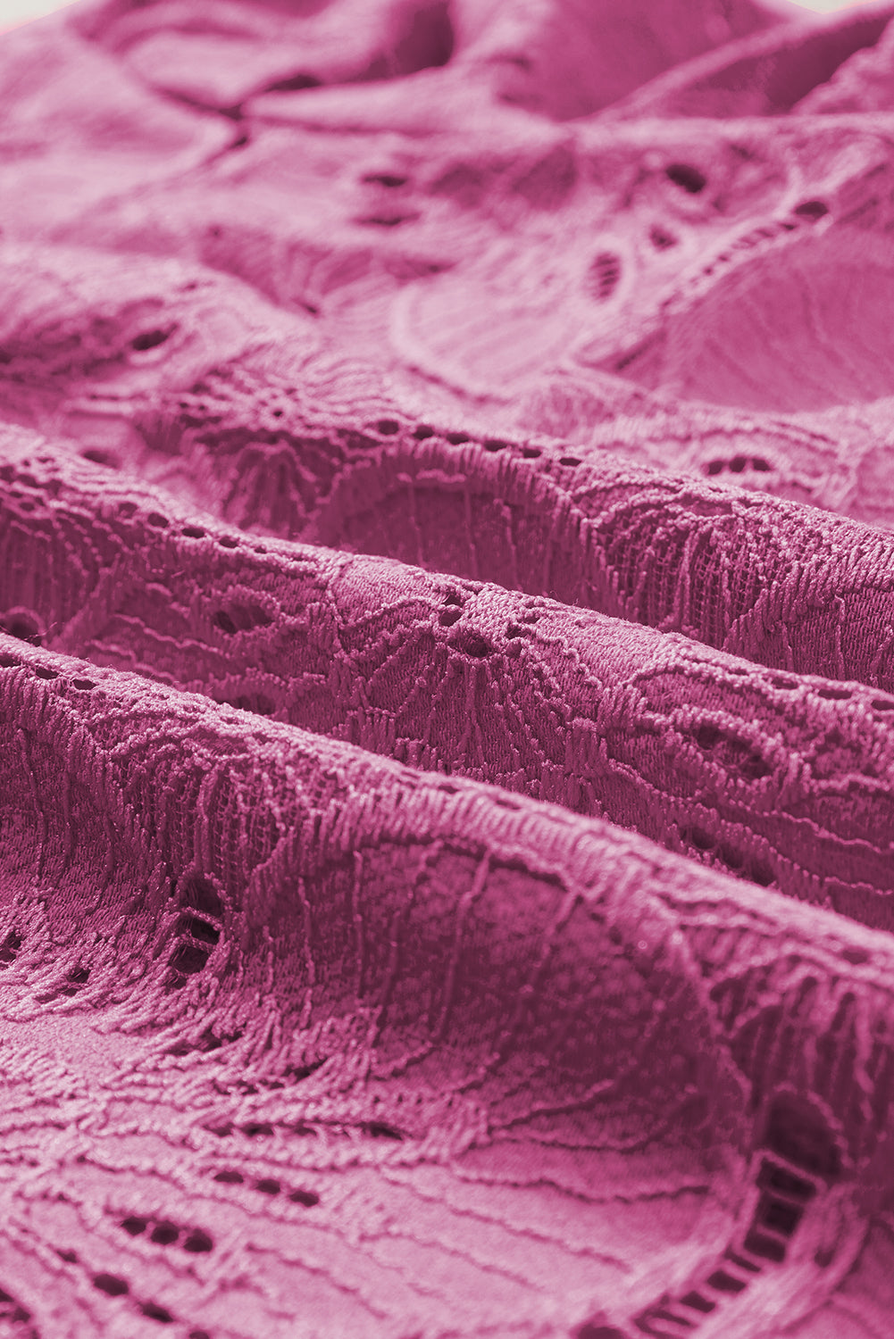 Bright Pink Flower Eyelet Jacquard Keyhole Flounce Sleeve Top