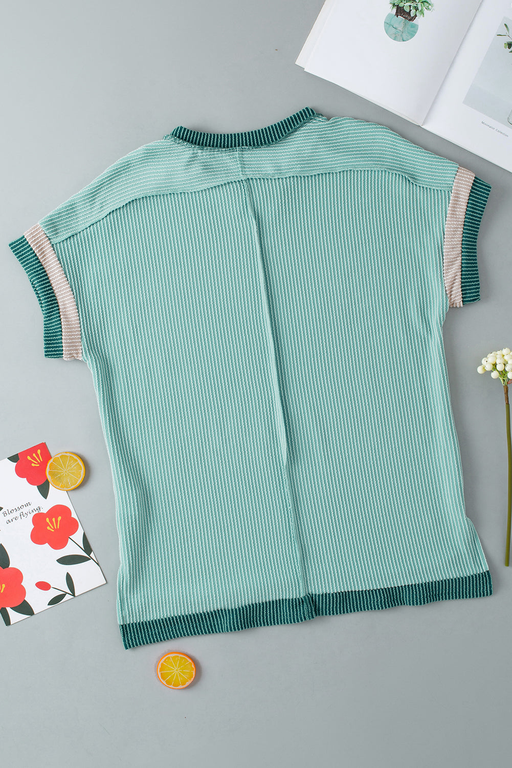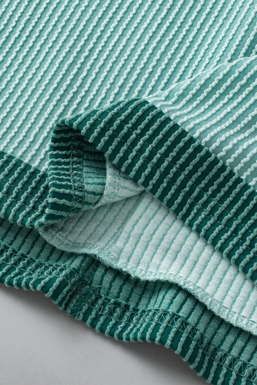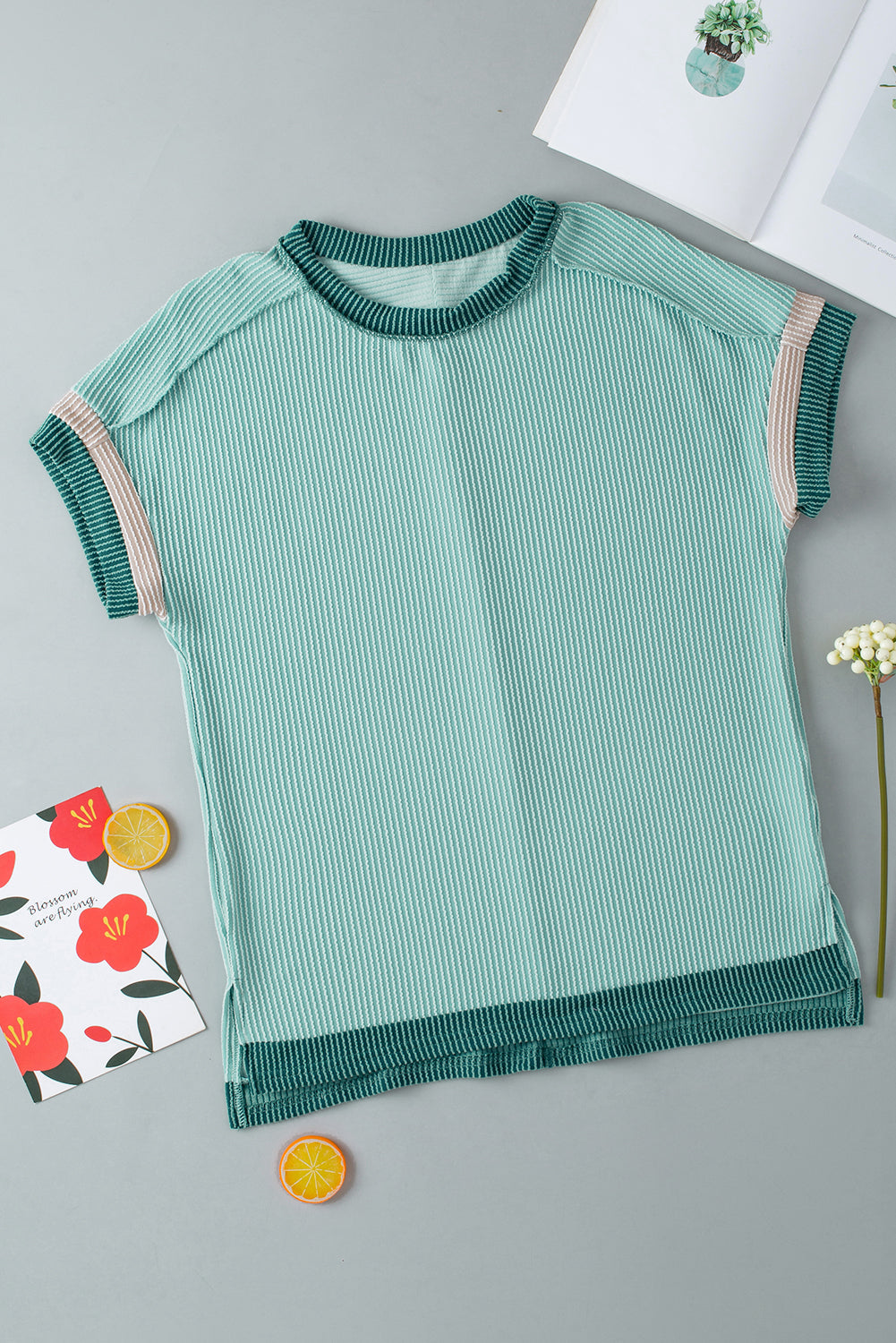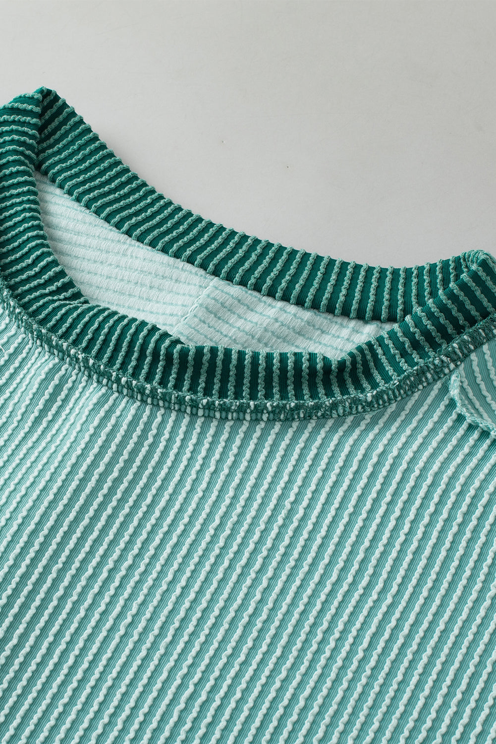 Grass Green Textured Contrast Trim Round Neck T Shirt
