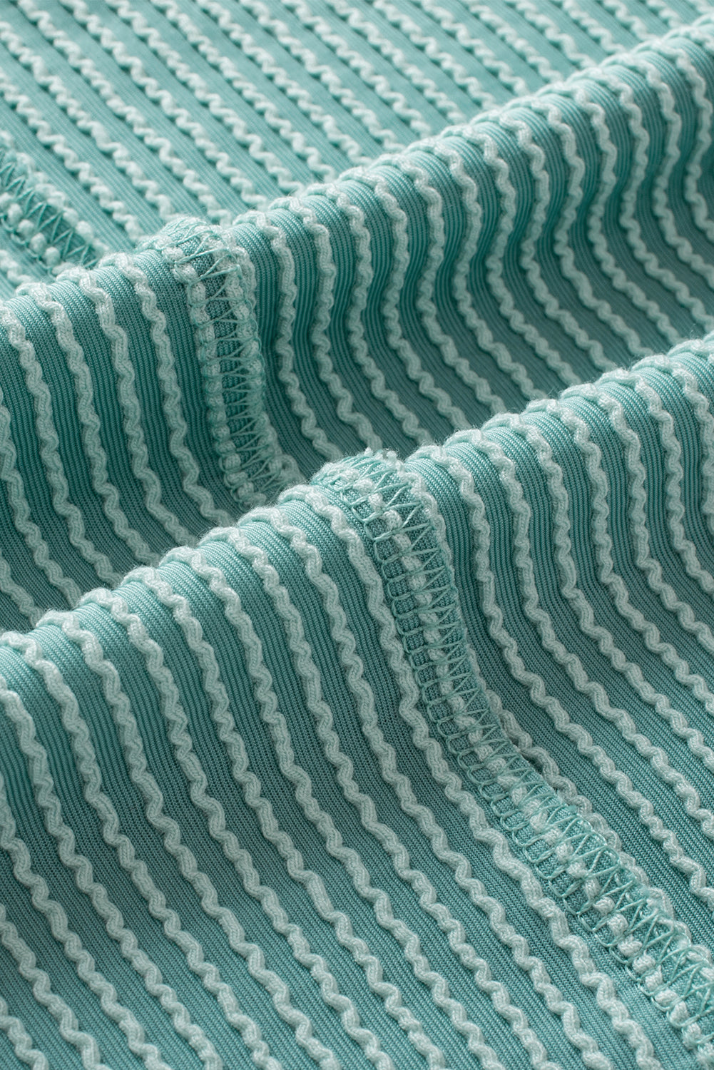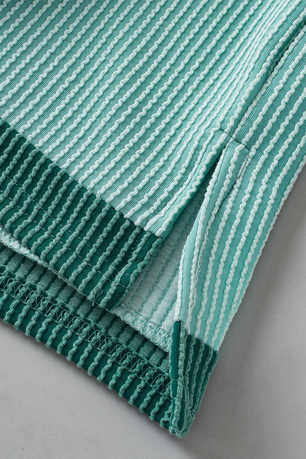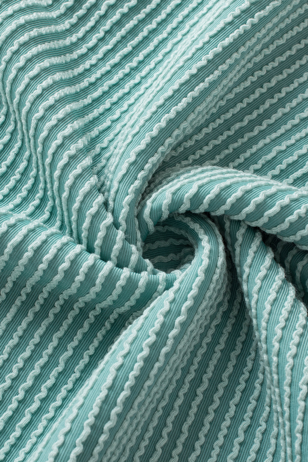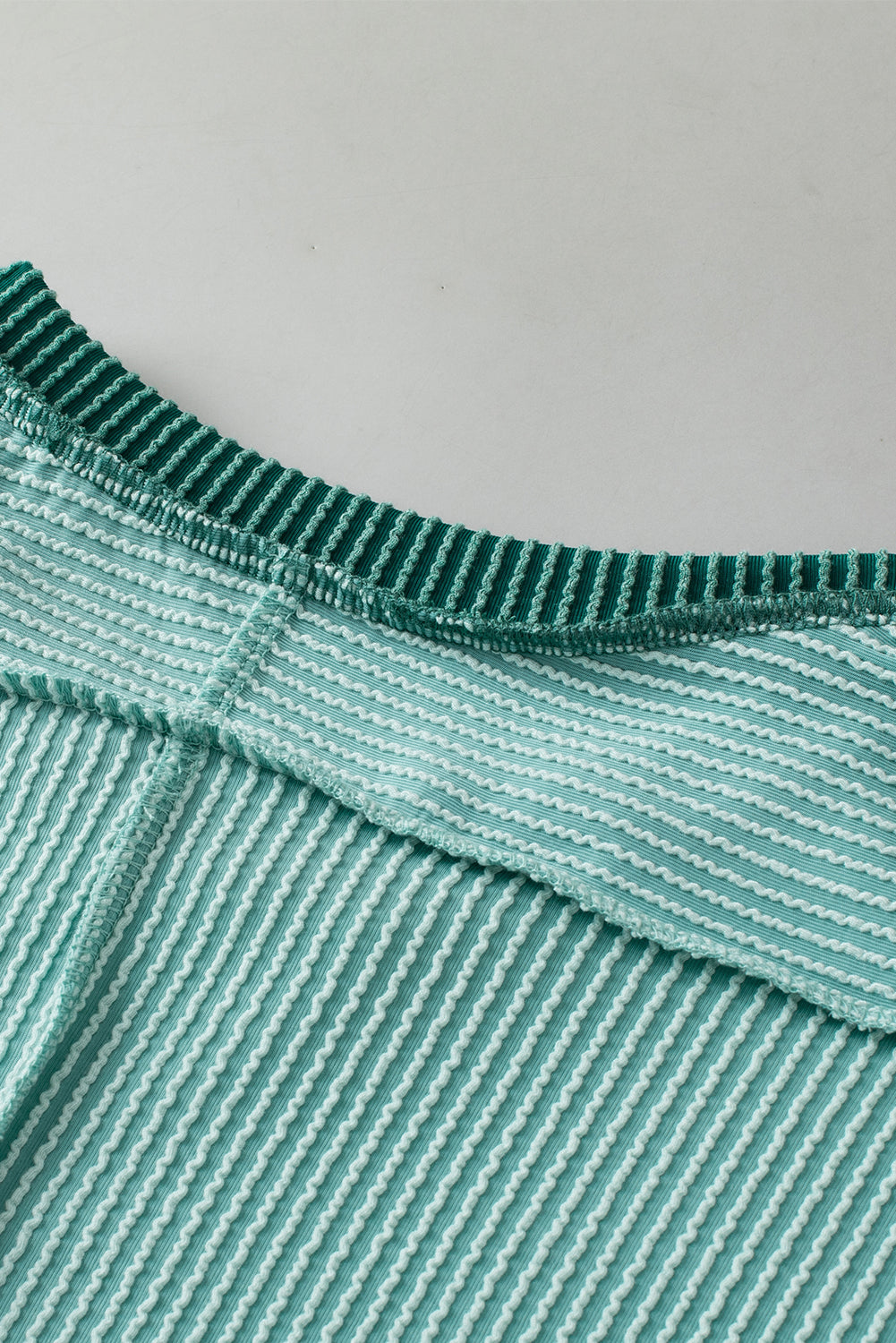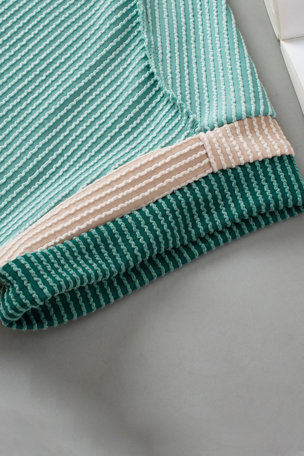Grass Green Textured Contrast Trim Round Neck T Shirt
