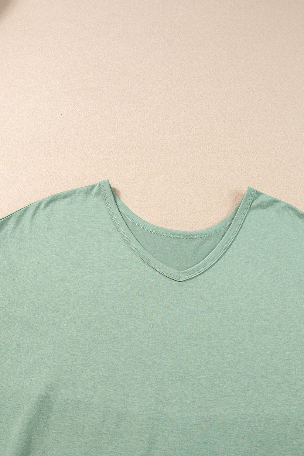 Grass Green V Neck Hidden Pocket Splits Maxi T-shirt Dress