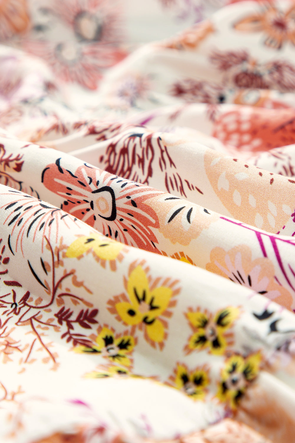 Khaki Floral Short Sleeve Square Neck Mini Dress
