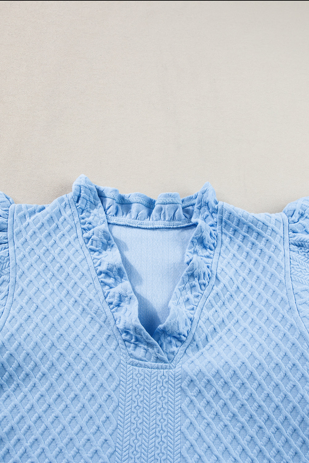 Effortlessly stylish with a ruffled V-neck and puff sleeve