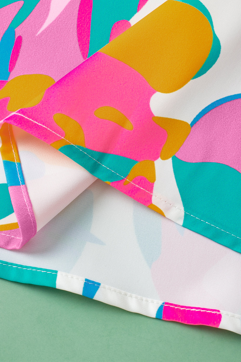 Multicolour Abstract Print Notched Neck Flutter Sleeve Blouse