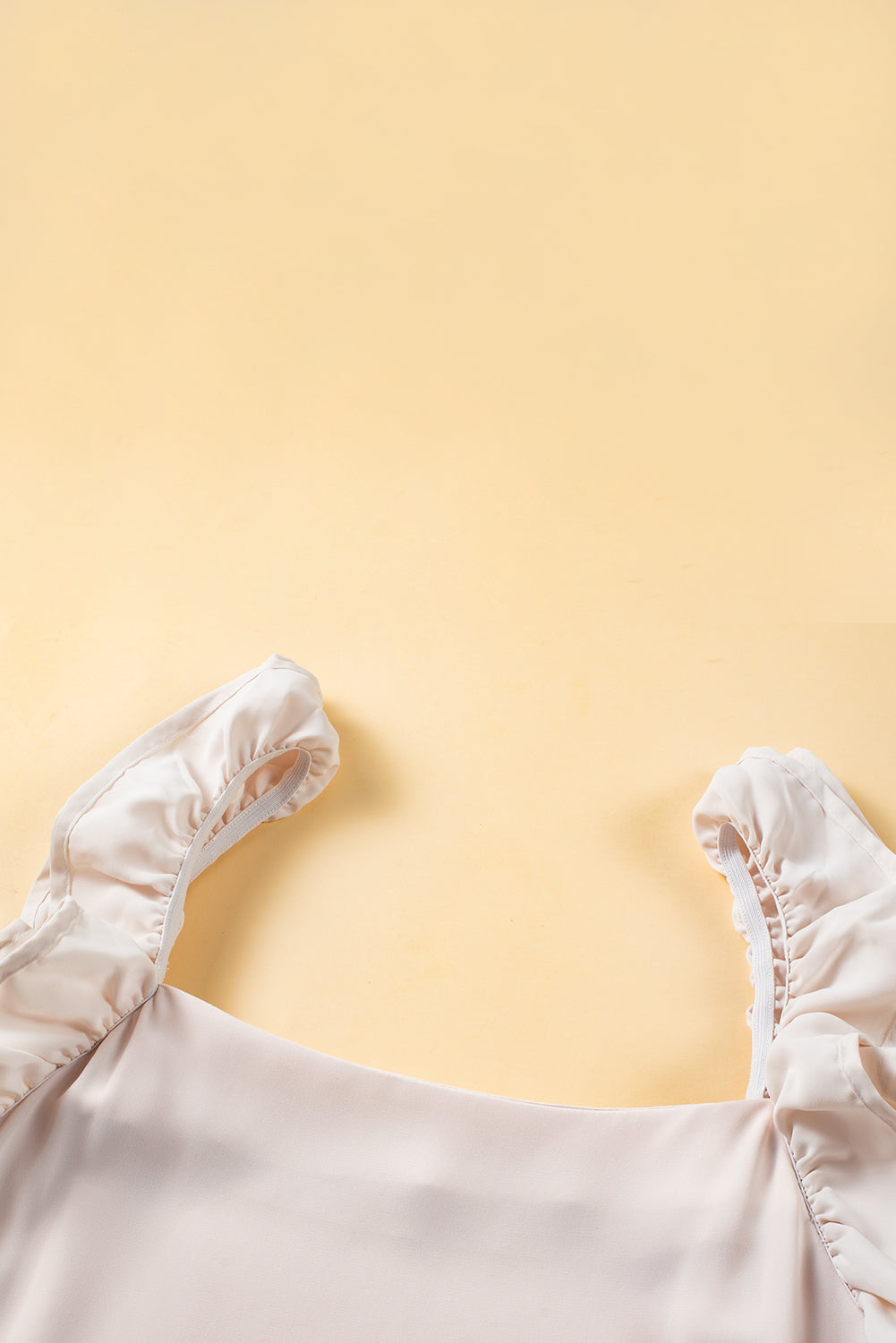 Oatmeal Solid Ruffle Trim Sleeveless Top