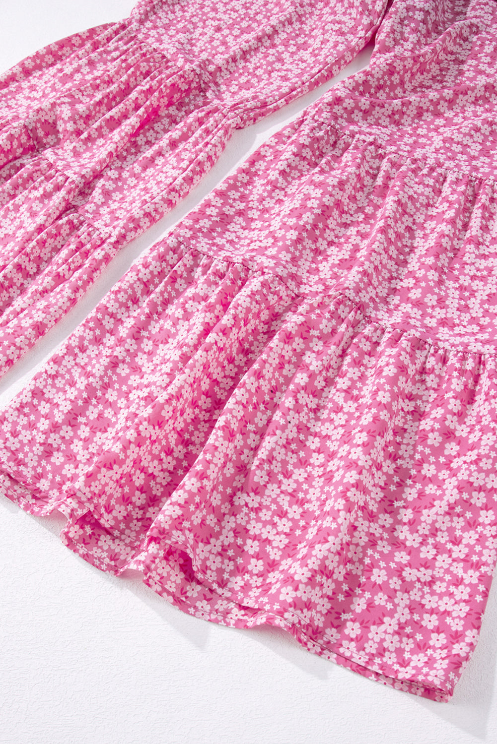Phalaenopsis Thin Straps Smocked Bodice Wide Leg Floral Jumpsuit