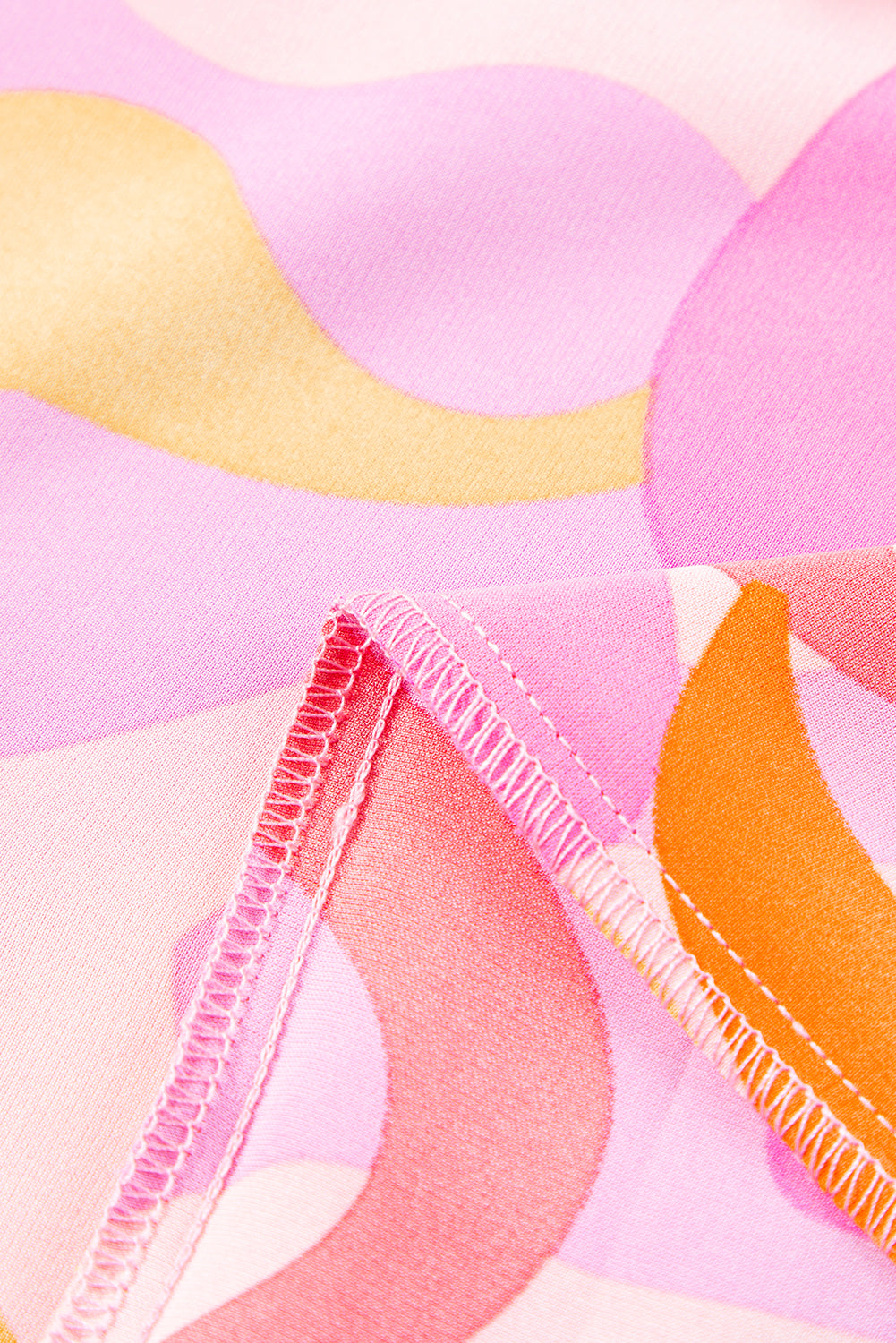 Pink Boho Abstract Print V Neck Wide Leg Jumpsuit