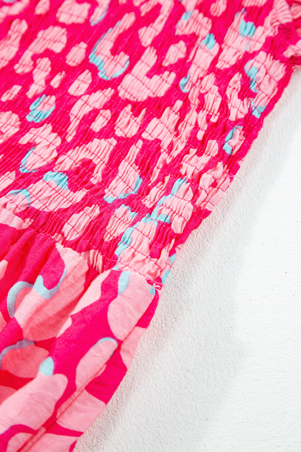 Pink Leopard Ruffle Straps Smocked High Waist Long Dress