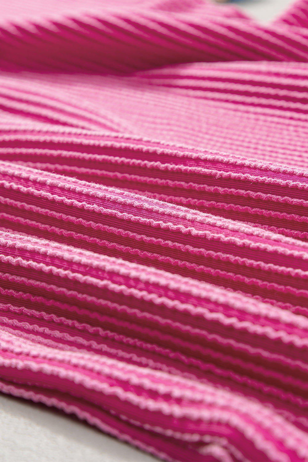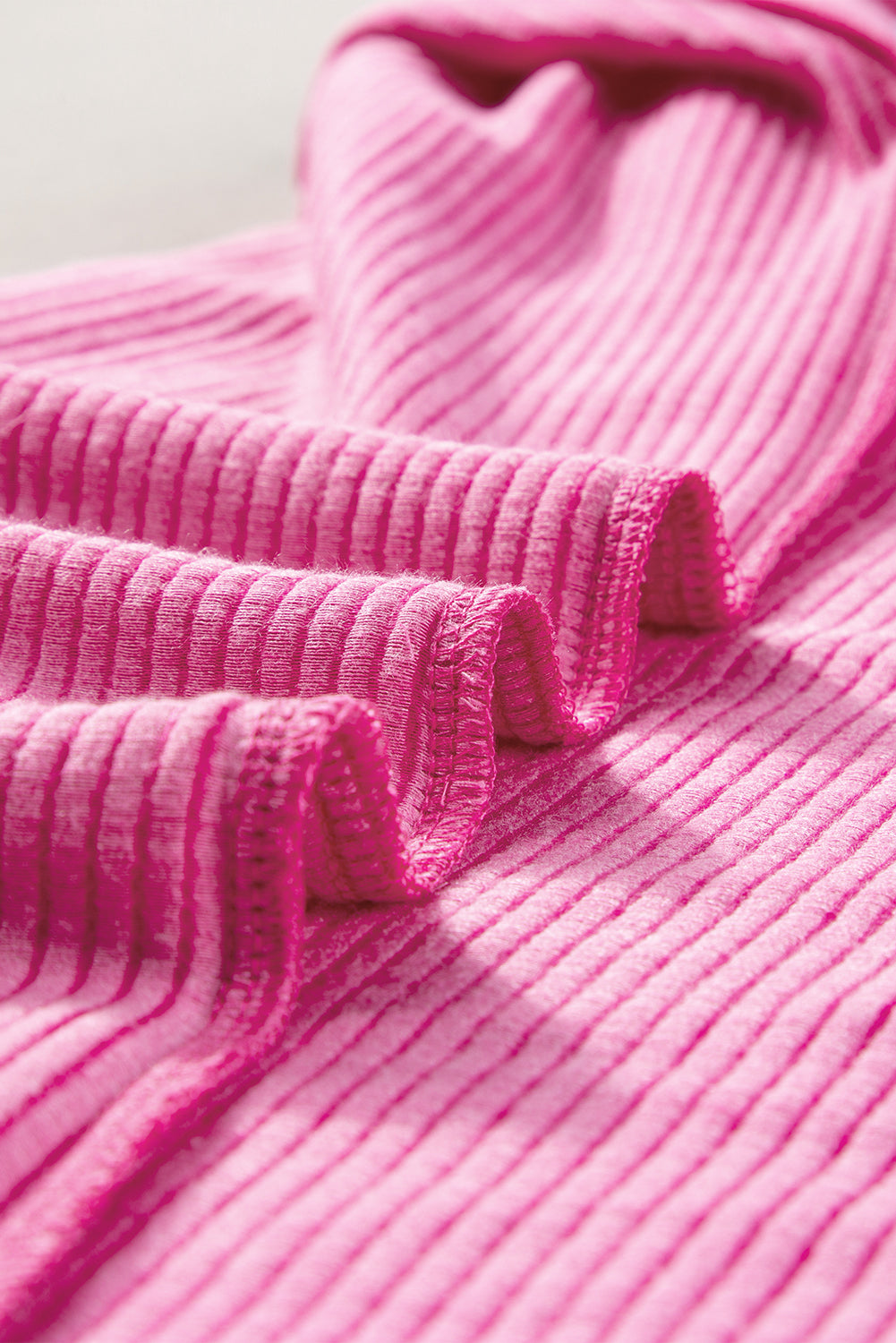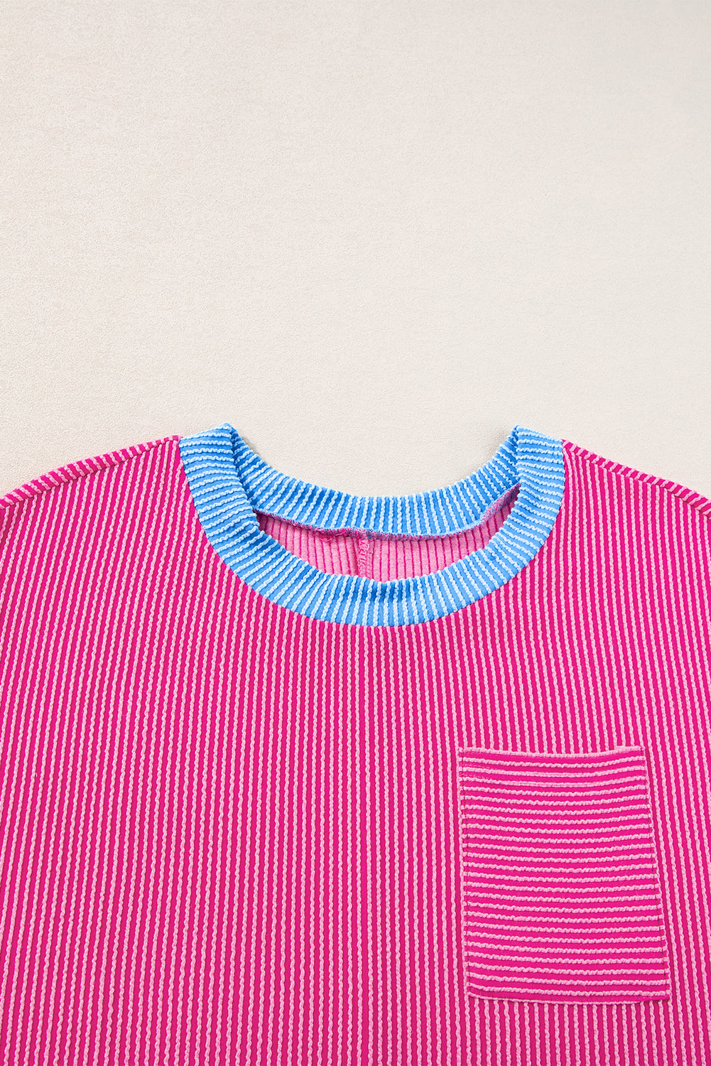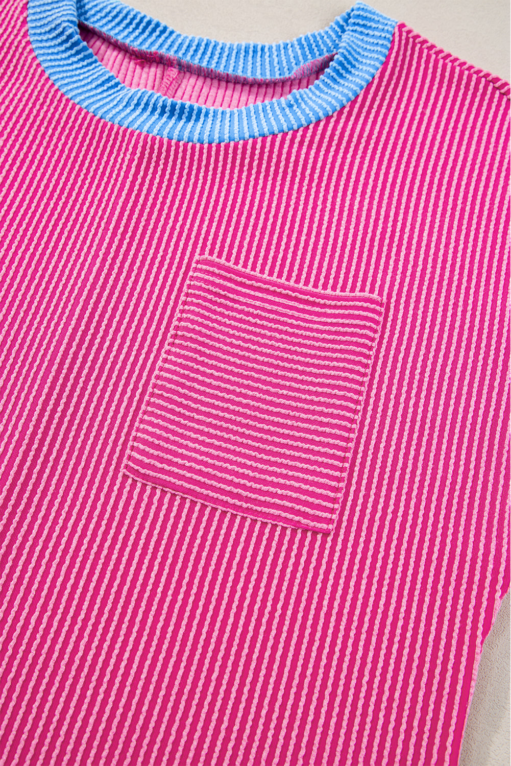 Rose Red Textured Colorblock Edge Patched Pocket T Shirt Dress