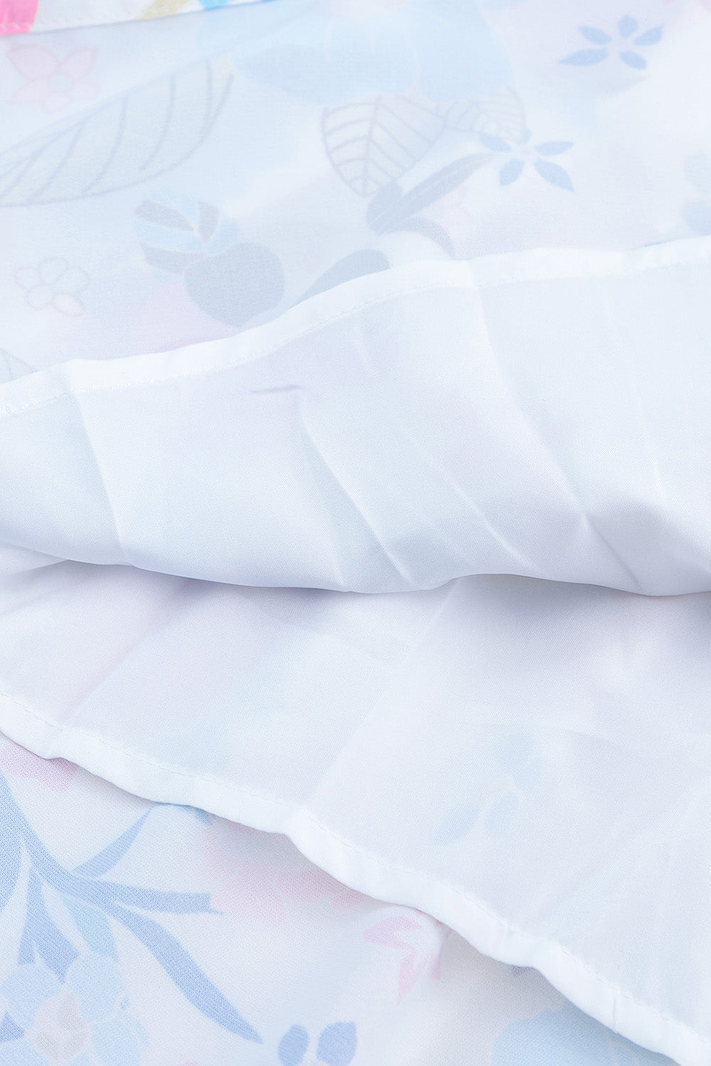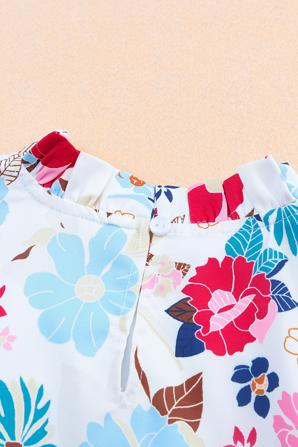 White Frill Mock Neck Sleeveless Tiered Floral Dress
